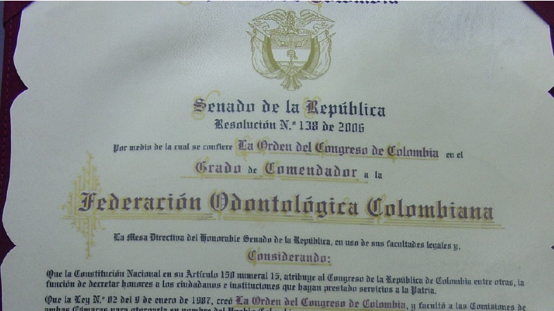 En 2006, la Federación recibió un reconocimiento especial del Congreso de la República por su servicio a la nación. En 2010, fue reconocida como miembro oficial de la Federación Odontológica Latinoamericana (FOLA). En 2015, Colombia adquirió representación relevante dentro de la Federación Dental Internacional (FDI), participando activamente en discusiones globales sobre salud oral, sostenibilidad, educación y políticas sanitarias.